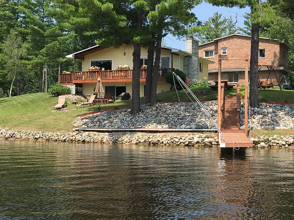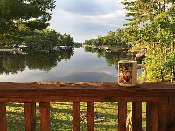 Where this home sets is a unique once in a lifetime location with 90' for waterfront. Look out the front window to almost a mile of water. This is the vacation home you've always wanted. Current owner lives year round and has been in the family since built. This vacation wonderland home is move in ready and features a year round suspension dock with mooring whips for your boat. The swing and picnic table stay with home. Brand new wrap around deck. New rockscape, basement walk out door and window. New 1st floor doorwall. Natural gas! Auto start Generac generator to keep your pipes from freezing. Central air. Steel seawall cover with rocks. Amish built rock walkways. TWO fireplaces! Hardwood floors under carpet. New 10 x 16 Shed! The entire foundation has been dug out and reset with pylasters. New well and new septic system. Buyers should research property size. Conflicting public records. Walkout lower level could support more bedrooms.