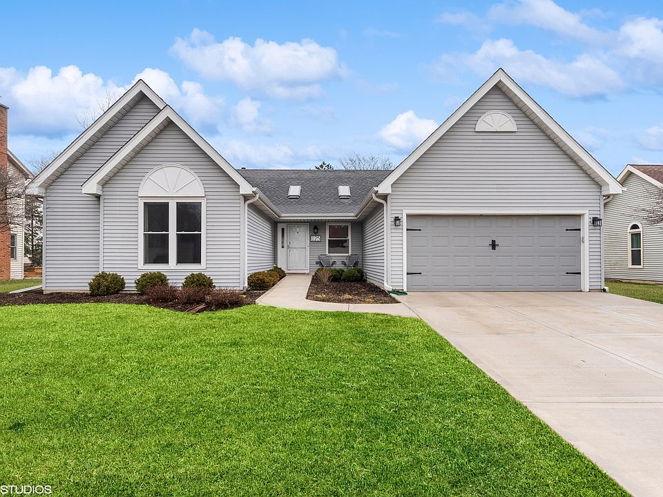 Striking 3 bedroom, 2.1 bath Amberwood model with one-level living awaits its new owners in highly sought-after Cedar Creek subdivision! Dressed in a soothing neutral color palette, the expansive windows and skylights throughout the home offers rich natural light, highlighting the dramatic vaulted ceilings and warm tones of the wood floors, flowing seamlessly throughout the first floor. Expansive living room/dining room combination provides unequaled family living space and scenic views. Adjacent, updated kitchen boasts tons of cabinetry, paired with granite countertops, stainless steel appliances, including a new dishwasher ('21). Nearby spacious family room hosts a masterful brick surround fireplace and sliders to the outside paradise. Charming 1/2 bath conveniently located by garage. The bedroom wing of this beauty houses an extremely spacious primary bedroom, hosts closets galore, plus a luxurious double bowl vanity with stunning granite counters & stainless steel faucets. Separate bathing and shower areas exquisitely tiled. Two other nicely-sized bedrooms have a recently remodeled modern hall bath to use. A "must have" recreational area, ready for everyday living or "party time," teamed with a bonus office/bedroom space, is loaded with lots of storage and laundry area, making this lower level square footage irresistible! Ready to BBQ? The new patio ('20) right off the family room is the perfect spot! Privacy and serenity comes for free! Ideal location with Knox Park right in the neighborhood, excellent schools at every level, and convenient amenities nearby! Pull up the new driveway to the home you've been waiting for; you will not be disappointed!