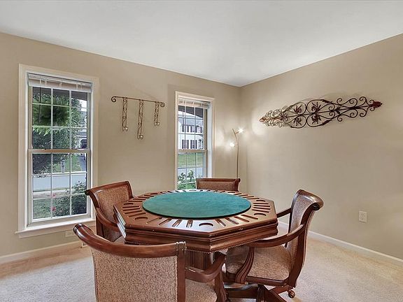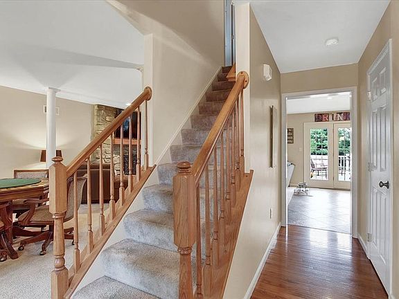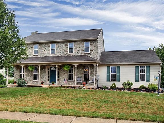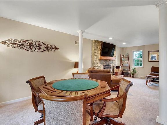 Lovely & stylish, move-in ready home. Open floor plan, huge kitchen island w/granite counte rtops & recessed lights. Family room & entertainment rooms w/columns & a wood burning stone fireplace. Dining room has crown, chair and shadow box molding as well as hardwood flooring. Lg master suite w/luxury bath having tile garden jetted soaking tub & stand up shower. Great outdoor space w/Trex 16' x 18' deck & front porch. Basement has full bath rough-in