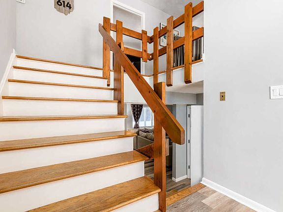 Oversized bi-Level home nestled on a quiet dead end street boasts updates galore! Beautiful wood flooring, new light fixtures, & plenty of natural light throughout. Spacious living room flows into dining room w/ deck access & views of backyard from sliding glass doors. Kitchen offers stainless steel appliances, gorgeous tile backsplash, & corner breakfast bar. 3 bedrooms & 2 full baths are located just down the hall from living room. Both bathrooms have been updated beautifully & boast shiplap accent walls. Master bedroom offers a new sliding barn door w/ access to on suite bath & organized closet. On the lower level you will find an additional living area w/ white washed brick fireplace, laundry, 4th bedroom, & 3rd full bath! Oversized 2 car garage and shed offer additional storage.