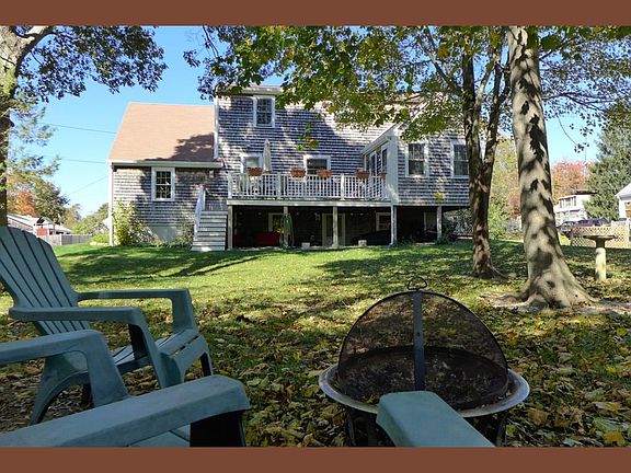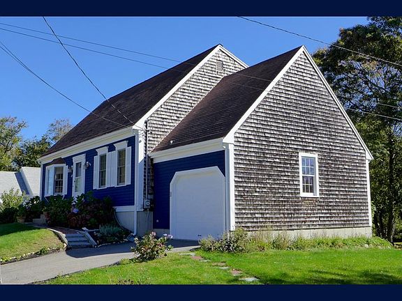 Walk to Brandt Rock esplanade shops, restaurants, beaches, boating, kayak, and tennis from this impeccably maintained Cape style home on large wooded corner lot. Interior features a bright open floor plan, plenty of sunlight, gleaming hardwoods, living room with bay window and fireplace, breakfast bar & den with cathedral ceilings. Two bedrooms, full bath on 2nd level and convenient bedroom & bath with laundry on first level. BONUS - beautifully finished walk out basement with media center presents many possibilities (family room, home office, fitness room etc.). Gorgeous Brazilian chestnut deck overlooks gardens with beautiful perennials that add color each season. Garage has storage loft, hooks and cubbies. Many charming touches & upgrades.
