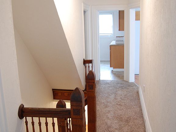 Main level offers bedroom with laminate flooring, large windows, full bathroom, and huge closet. Giant living area connects to equipped, eat-in kitchen with fridge, stove, and dishwasher. In-unit laundry room with electric hookups, folding counter, and storage cabinets. Top floor loft-style bedroom features 2-alcoves/closets and en-suite full bath. Two off-street parking spaces in back of building. Easy access to busline. Just 3 blocks from Waterworks Mall & St. Margaret's Hospital. SUPER close to I-28 and Highland Park Bridge Owner pays for sewer, water, and parking. TENANT TO BE BILLED ON HVAC PER SQ. FT