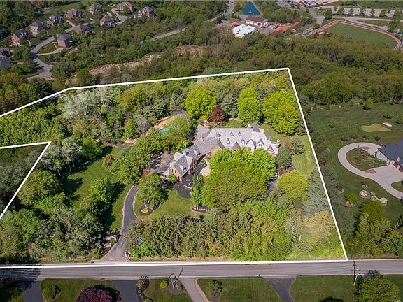 Nestled on 7 sprawling acres, this French Country inspired masterpiece exudes timeless elegance and unparalleled charm. Over 11,000 sq. ft., this custom home boasts meticulous attention and refined craftmanship at every turn with 6 bedrooms, each with its own ensuite bathroom. The Owners Suite is conveniently located on the main floor with space for both relaxation and rejuvenation. The heart of the home is the expansive great room, featuring soaring beamed ceilings accentuating the sense of space and grandeur. For the discerning chef, the gourmet kitchen is equipped w/ top of the line appliances, butlers pantry/serving area, custom cabinetry and limestone flooring. The formal dining room w/hand carved mantle is an elegant space for hosting dinner parties. The lower level has an impressive Gameroom, Bar Room, wine cellar and gym. Outside, a resort-style pool, pool house, and four-car garage offer endless opportunities for leisure and entertainment. Property backs to Peterswood Park.