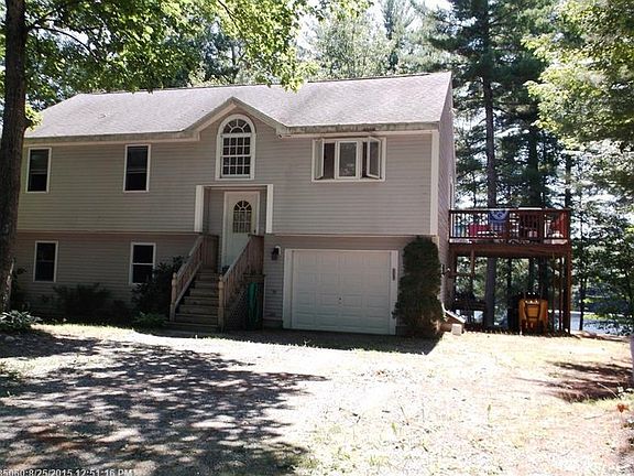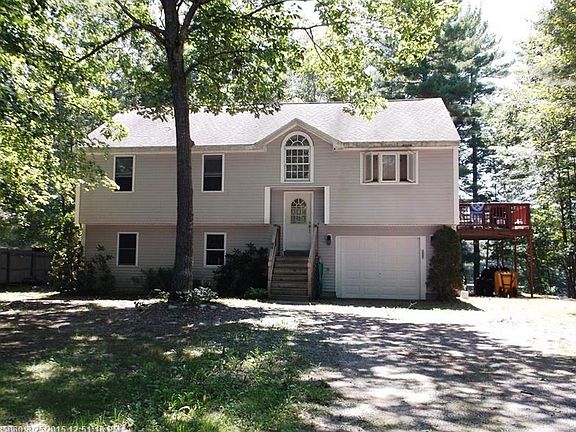 Split Level Ranch with 158 ft on Wadleigh Pond. Open concept kitchen and living room with cathedral ceiling and sliders that lead out onto a wrap around deck with great water views. 3 BR, 2.5 BA, Partially finished daylight basement with 1/2 bath, framed walls for a large family room with woodstove + an additional room. Sliding glass doors that lead out to the back yard and water. Great place for summer or winter activities!