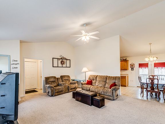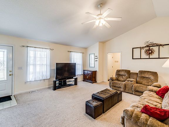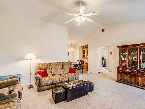 This home sits on 1.42 acre with no restrictions, concrete drive with side entry 2 car attached garage, Screened back and storage building, Cathedral ceiling in living room and 18x15 master bdrm with walk in shower in master bath, split bdrm plan, 13x10'9 additional bed rooms, custom oak cabinetry, pantry, refrigerator, range, dishwasher, microwave are included.