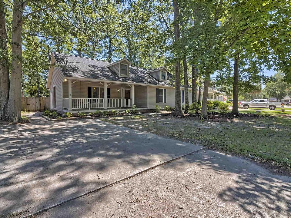 Great one story ranch home with deep front porch just minutes from Lexington Medical and The Vista! New paint! Spacious great room features vaulted ceiling, hardwood floor and wood burning fireplace! Eat in kitchen with custom cabinets! Huge backyard featuring an oversized deck, patio and wooded yard with privacy fence! Will not last long!