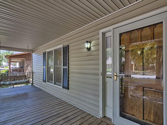 - Kitchen: Eat In, Cabinets-Stained, Floors-Vinyl, Ceiling Fan