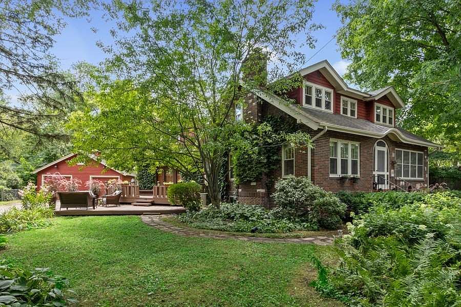 Lovingly maintained, University Hts 1930's brick two story situated on corner lot with mature trees and beautiful landscaping. Iconic home with original woodwork, doors, glass hardware, wood flooring and lighting fixtures; priceless charm with authentic black and white retro bathroom, arched front door and built-in kitchen hutch and banquette. New kitchen with deep cabinetry, granite counters and stainless appliances including range with heat lamp feature; baths with new tiling, fixtures and quartz counters; main floor family room addition with fireplace and new carpet; newly finished LL bonus area, bedroom (non-conforming) and bath. Abundance of space offering formal living room with deco fireplace, formal dining, 1st flr study with built-ins, guest bath on main, 2nd level with 3 bedrooms (2 closets in each room), 2 upper level baths and 2nd level laundry. Improvements: 2 yr old garage roof, recently painted exterior, new storm windows and window pulls, added sump pump and radon mitigation and new HVAC (addition has separate HVAC). Outdoor enjoyment from front screened porch and back deck. Modernized without sacrificing integrity. Prize location, walking distance to UHIC, law school, sporting events, town, neighborhood restaurant and trails.