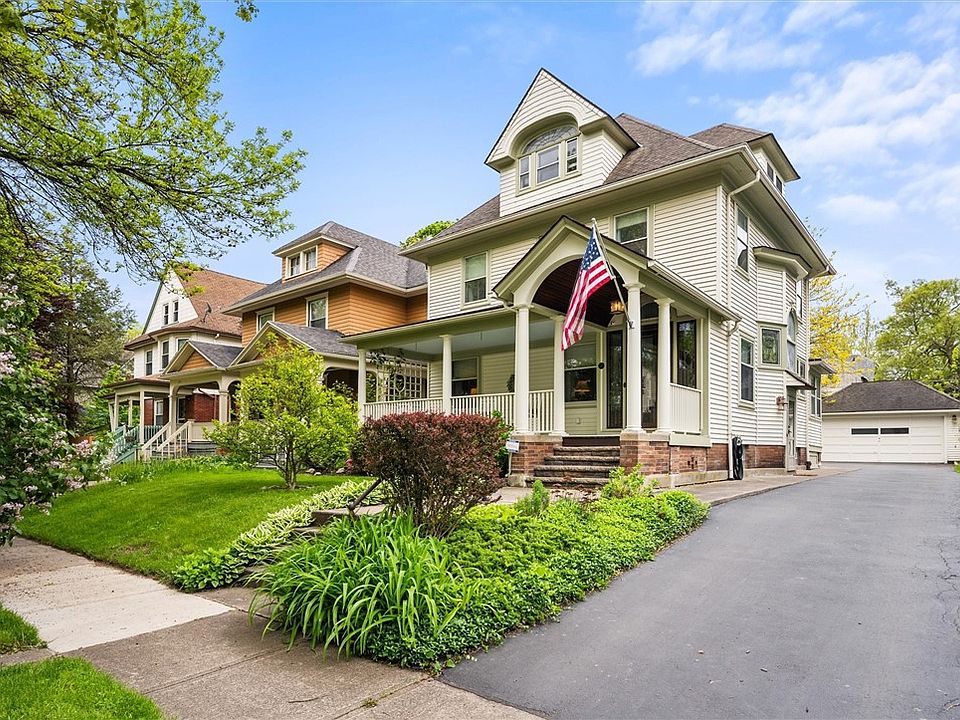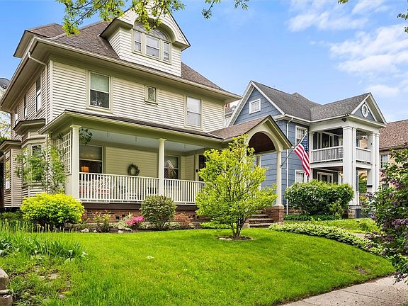 EXQUISITE home nestled in the historic Maplewood area. Infused w/timeless beauty, this rare gem exudes warmth & charm. Enjoy tranquility as you unwind on the inviting front porch. The home offers a grand entrance leading to the living & dining spaces w/gorgeous chestnut trim, large windows boasting window seats & hardwood floors. Discover the perfect blend of functionality & luxury in the butler's pantry, complete w/fully functioning dumbwaiter. An entertainer’s dream. The kitchen has been updated w/beautiful cabinetry & newer appliances & both bathrooms have been updated. Designer finishes in many of the rooms. Ascend the magnificent stairway to the 2nd floor w/stained glass windows, a true masterpiece. Embrace the allure of outdoor living on the deck, private backyard complete w/ garden boxes, perennial flowers & fully fenced. The sunroom is a perfect spot for alfresco dinners. Parking is a breeze w/a spacious two-car garage, offering convenience & security for your vehicles. Unleash your creativity in the walk-up attic, a versatile space just waiting to be transformed into your own personal sanctuary. Beat the heat w/central air! New HW Heater. Delay Neg Offers due 5/21 by 11 am