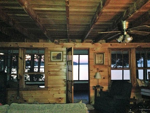 Nestled on the waters edge, you'll yearn never to leave this charming, early 20th century cottage, with breathtaking sunset views! Breathe in the summer breeze from the full length screened porch with its panoramic waterfront view of Pushaw Lake. Warm to the waterside fireplace, and enjoy the easy walk down to the shoreline and boat launch. Relax in the charm and comfort of the wood floors, beamed ceilings and natural beauty of this lovely cottage!