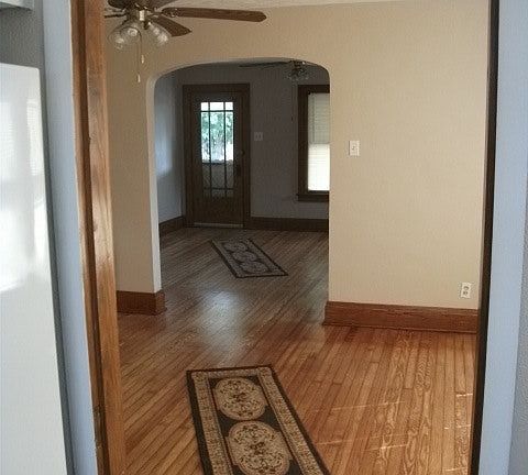 Located on a nice quiet street in town with nice size yard this 2 bedroom 1 bath home features hardwood floor throughout, large from porch, full basement, central air, rear patio, large bedrooms and much more.