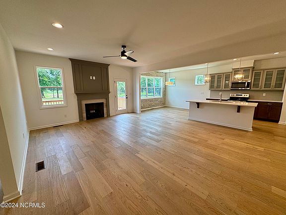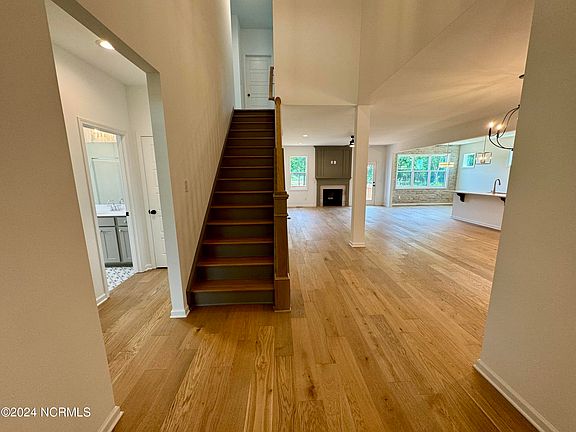 *LIMITED TIME MOVE-IN PACKAGE INCLUDED! Explore this remarkable 2,445 square foot Fillmore B floor plan nestled on .738 acres, offering stunning views of farmland and a peaceful pond. Making this home is the perfect sanctuary for unwinding and embracing the tranquility of country living. Built on a crawl space with high quality fiber cement siding and brick, this 4-bedroom, 4-bathroom home is where convenience meets comfort with the owner's suite, a second bedroom, a second full bathroom, and a laundry room all thoughtfully situated on the main level. As you step inside, this home features level 3 Monet Montpellier 6-1/5 engineered hardwood floors throughout the entire first floor. The spacious kitchen boasts a large Benton stained burlap island with level 5 Silestone Pearl Jasmine quartz countertops, Stone grey upper kitchen cabinets with frosted/obscured glass, soft close cabinetry, 3x6 Dorian Matt brick pattern backsplash, accompanied by a breakfast nook with a stunning custom brick accent wall, and separate dining area. Perfect for hosting gatherings or enjoying intimate family meals. The owner's suite has a custom chevron pattern accent wall and its bathroom features beautiful 12x12 jewel grey tile flooring and 6x6 matte biscuit brick pattern tile shower with a bench. Upstairs, discover two bedrooms and two full bathrooms, a large loft, and two unfinished walk-in storage spaces, including one notably spacious. Parking and storage needs are met effortlessly with an oversized 2-car side entry garage. Visit us today and learn why NOW is a great time to buy at Griffon Pointe!