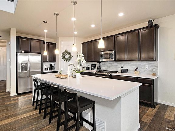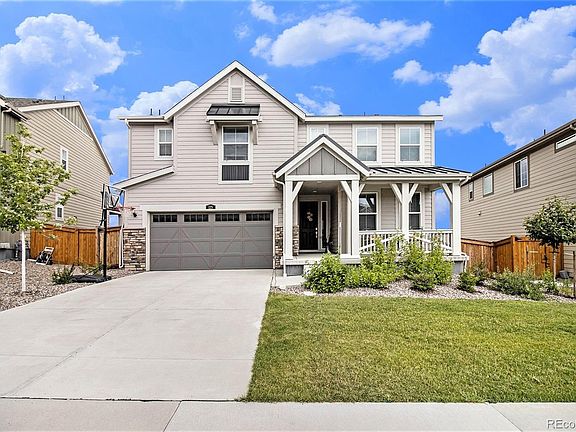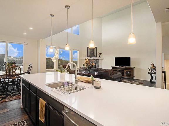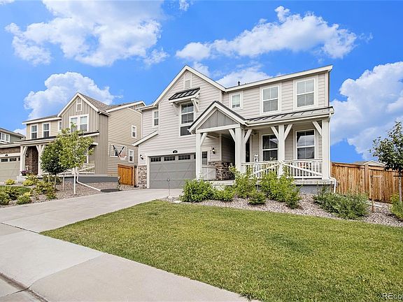 Prepare to be delighted by the main floor's grandeur, with its enormous ceilings that create a light, bright, and airy ambiance, inviting natural light to cascade throughout the open floor plan. Stunning kitchen with large island, pantry, GE SS appliances, eating space and open concept to family room. Additional nook off kitchen with built in desk/study area and cubbie area for sports equipment, backpacks, gear and more! Step outside onto the deck and immerse yourself in beautiful views on the deck, watch the Colorado sky bring tranquility and natural beauty each evening. 3 car tandem garage. And an unfinished walkout basement that offers excellent potential, featuring a rough-in for a bath, presenting a blank canvas for you to unleash your creativity and design your ideal space. Experience the unparalleled lifestyle that awaits in the beauty of Castle Pines.