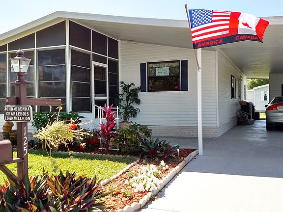 Lot #125 ; 1989 ; 2 Bedrooms ; 2 Bathrooms ; 960 sq ft ; $33,000. Recently reduced price! This 1989 home is in great shape and has two bedrooms and two bathrooms. This home has all you need to move right in. The home has a 10 x 10 screen room to relax and enjoy your morning coffee. The kitchen has a nice large window over the sink allowing lots of natural light. You will also enjoy the breakfast bar, just right for two, in the kitchen open to the dining room and the large living room area. The dining room and hallway are updated with laminate flooring. The home comes with completely furnished and move in ready. The entry has a nice desk area to create that home office. The community has plenty to offer including two clubhouses, two pools, on site restaurant & pub, exercise room, billiards rooms, libraries and a pro shop for the 18 hole private golf course. Tennis, pickle ball, horseshoes, bocce ball, bingos, dances, shows, dinners and church services and so much more are also offered. Golf cart is included and also a free year of golf. Come relax and enjoy.