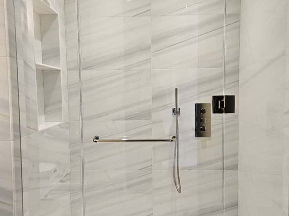 Floor-to-ceiling glass windowsAbundant natural lightSouthern viewsRadiant heated floorsFrameless glass shower enclosureCustom wall-hung millwork vanityOpen kitchen