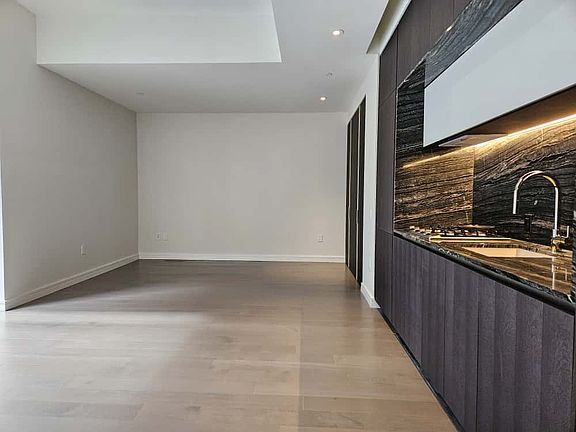 Large studio, 664 square feet, this well-designed studio residence features 10' ceilings and southern views. The entry foyer leads to the living/dining room with floor-to-ceiling glass windows flooding the residence with abundant natural light and six-inch stained white oak plank flooring. The open kitchen designed by March & White offers a choice of three different marble color palettes for kitchen counter and backsplash, and top-of-the-line fully integrated Miele appliances including a gas cooktop, dishwasher, refrigerator, speed oven, garbage disposal, and custom designed kitchen faucet. The well-appointed master bathroom offers radiant heated floors with a custom wall-hung millwork vanity and a medicine cabinet with decorative metal edging and recessed lighting, Calacatta marble flooring and shower walls, a frameless glass shower enclosure with rain head and hand shower, and a wall hung Duravit toilet. The residence is complete with a washer/dryer.