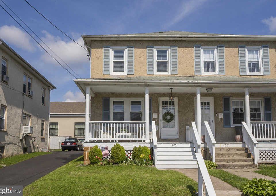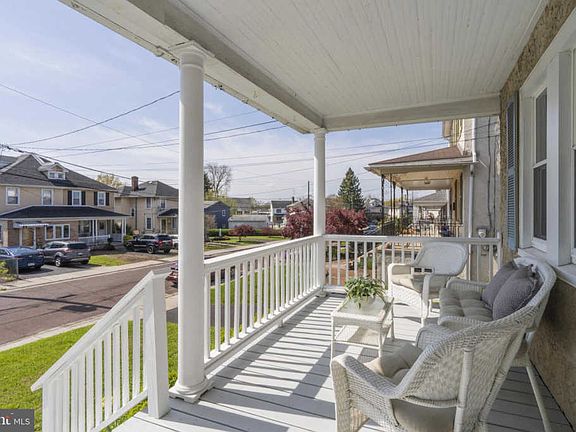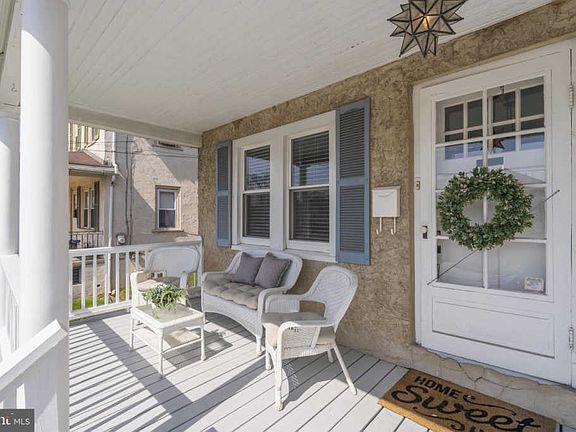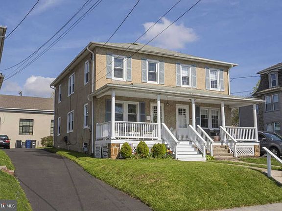 Welcome to this beautifully maintained 3BR Twin with off-street parking, and wonderful upgrades in the ever-popular Ambler Boro! A welcoming, covered front porch awaits your visit, a great location to unwind, and take in the views. Upon entry into the home, you will see hardwood floors that run through the tasteful, and ample, living room, and dining areas. There are wide moldings, trim, faux wood blinds, and all newer windows throughout. As you walk through the dining room you will enter the renovated kitchen with custom soft-close cabinetry, granite counter tops, white subway tile, a farmhouse sink, and newer Whirlpool stainless-steel refrigerator, microwave, and dishwasher. There is a large, oversized pantry off the kitchen. In the kitchen, you will see a bay window which lets in plenty of natural light. This bay window looks over a newer 15'x15' patio with Techo-Bloc pavers, and a good-sized backyard. As you enter the 2nd floor, you will see an updated hall bath with a deep soaking tub. Hardwood floors run throughout the hall and into the 3 bedrooms. All bedrooms have lighted ceiling fans. There is also a pull-down staircase to a partly floored attic. There is a large, full, unfinished basement with laundry. This lovely home is in a prime location within walking distance to the train station, restaurants, movie theatre, and shops. This wonderful home is truly a great find and will not last!