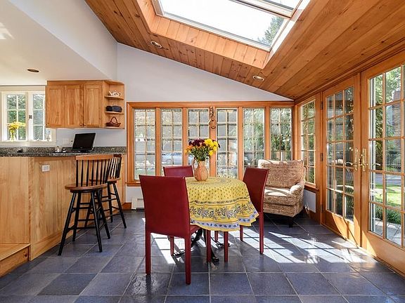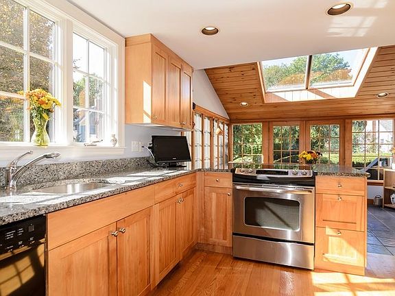 Sophisticated and sunfilled Dana Hall Cape just steps from the town center and the Brook Path. Beautifully updated first floor master suite provides an ideal option for the empty nester or the growing family. There is an eat-in kitchen with cherry cabinets, granite counters, stainless appliances, lots of windows, a skylight and French doors leading to the deck. The family room has wonderful natural light with a wall of windows looking over the deck. There is a front-to-back living room with fireplace, dining room, an office and another bedroom or second office on the first floor. The second story is perfect for a growing family with two additional spacious bedrooms, a full bath, two walk-in closets and plenty of storage. The lower level has a full bath, ample storage, and a playroom. This sensational home is set on very private, landscaped grounds, and is perfect for relaxing and entertaining.