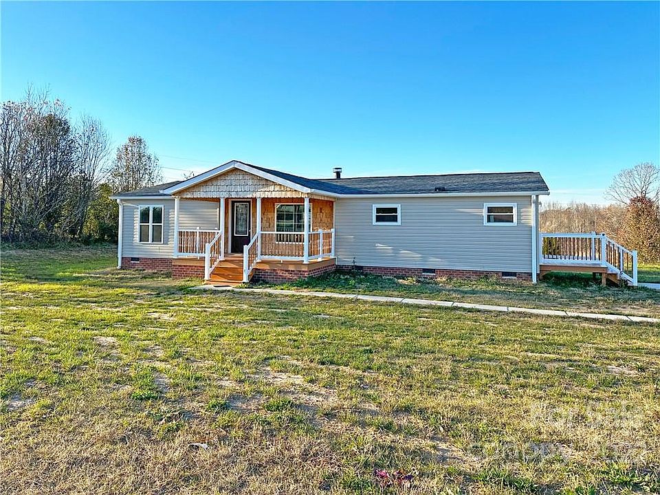 Don’t miss this low-maintenance home on a large, flat lot with mountain views. The open concept allows for entertaining or just spending time centrally in the home. New flooring, new roof, new HVAC, new appliances, freshly painted, and updated light fixtures. The living room has a gas log fireplace and is open to the dining area. The laundry area is accessible from the kitchen or side deck. The split-bedroom plan allows for privacy for the primary suite from the two secondary bedrooms. The primary suite features a walk-in closet, and an ensuite bath with a vanity, soaking tub, and shower. The covered front porch is 6.5 ft x 15+ ft. The side deck is 6 x 6. Come enjoy peaceful country living with no HOA dues!