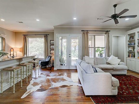 Exceptional Custom Resale in popular Hampton Ridge, Lake Caroline. This well-maintained, designed home is showcased w/beautiful Heart Pine floors gracing the main living areas+ brick architectural wall-accent..Wonderful floor plan featuring OPEN OPEN concept: LGR Great Rm w/gas-log fireplace (built-in's) & banks of windows overlooking backyard; Cook's Kitchen w/stainless appli & granite+ island with seating + a breakfast/dining area w/a fabulous window that overlooks the private treed backyard..The Master bedroom (trayed ceiling) has a generous-size Master Bath designed with 2 walk-in closets (large) w/built-in's* jacuzzi tub + separate vanities + walk-in shower* Bedrooms 2 and 3 share a full bath* A bonus is the back hallway entry w/cubicles..lgr Laundry rm w/tons of cabinets & sink* A large covered back porch + patio overlooks the tree lined fenced property* Gutters*2020 Architectural Roof* Alarm system pre-wired*LOCATION * Lake Caroline offers Clubhouse facility*3 swimming pool* tennis and pickle- ball courts *MERMAID Restaurant* golf club & 18 hole Randy Watkins golf course (must join for golf)..walking trails + park + 835 acre private lake + second lake...great fishing and water sports!