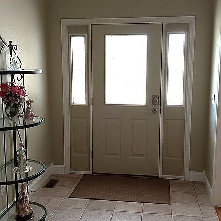 Tile in all bathrooms, entry way, kitchen and laundry room.