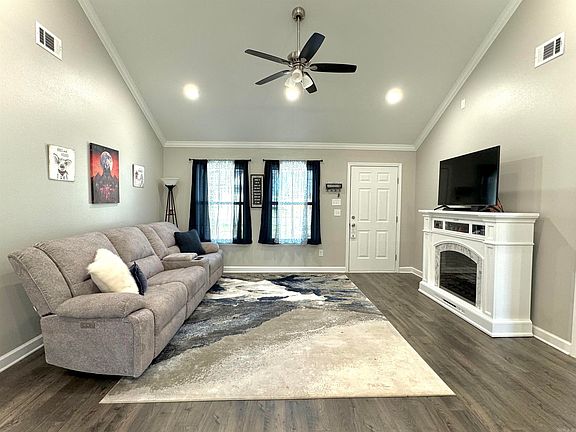Constructed in 2023, this home features an expansive open-concept layout, highlighted by a vaulted ceiling that adds an airy ambiance to the living space. The kitchen, equipped with sleek stainless steel appliances and adorned with granite countertops and white subway tile backsplash, seamlessly flows into the spacious living area, offering the perfect setting for gatherings and everyday living. Venture outdoors onto the patio, enveloped by a newly installed wooden privacy fence with two convenient gates. This outdoor haven provides ample room for entertaining under the sun or stars, ensuring both privacy and accessibility for you during yard maintenance. Don't miss the chance to make this oasis your own!