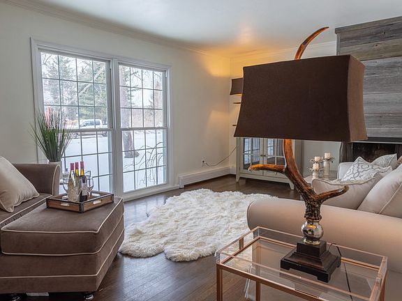 Every once in a while, you come across a property that has been so masterfully remodeled that it exceeds all expectations. 125 Hayes Circle is one such property. Located 15 minutes from Utica and within the Holland Patent School District, this incredibly warm and inviting home will speak to your sense of style as well as your need for modern lifestyle conveniences. As you approach the front of this 1,632 sq ft home from the street, you notice the peaceful neighborhood and large .82 acre yard dotted with towering oak, maple and pine trees. Its stately white columns with brick facade make an intriguing first impression as does the attached 2-car garage. It's an impressive sight, but only half the story. Step inside this pristine 3 bedroom, 2-1/2 bath split-level home and expect to be impressed. It's absolutely stunning. Every possible consideration was made to enhance its interior spaces for added functionality, a graceful flow from room to room with design elements that speak to the informal elegance of today's modern lifestyles. The open entryway serves to connect the first two floors of the home and offers the first glimpse of the home's modern-rustic aesthetic with its reclaimed barn wood closet doors and metal framing. Stepping up to the second level is an exceptionally welcoming living room with its dark stained original hardwood floors, reclaimed barn wood built-in bookshelves and magnificent floor-to-ceiling corner gas fireplace with black iron enclosure and stone base. The color scheme in the living room and throughout the house is understated with numerous large windows used as a design component to bring a light and airy sense of beauty to the interior spaces. There is also an incredible synergy between the rustic elements and modern elegance throughout this home. The crown molding in each room is the perfect example of this design philosophy and speaks to modern living at its best. Transitioning toward the back of the house is a chef's kitchen designed for intimate gatherings and gracious entertaining. This kitchen is exceptional with its gorgeous granite counters, glass tile backsplash, wood-look porcelain tile floors and the latest Samsung stainless appliances, including a 5-burner gas stove, side-by-side refrigerator and sleek dishwasher with controls integrated into the top of the door. The handsome center island with its rustic pendant light fixture, built-in wine cooler and prep sink is a work of art showcasing reclaimed barn woo