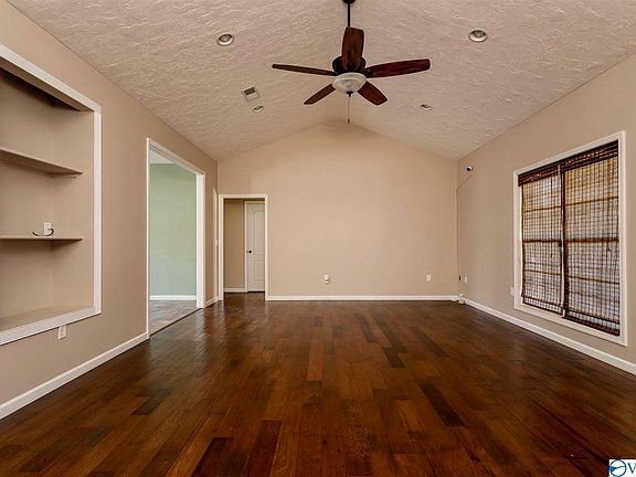 Fantastic like new home situated on 1.7 ACRES in Dogwood Valley just minutes from the Tennessee River Bridge and south of Huntsville. Nice private lot with plenty of room to spread out. This 4 bedroom home has brick and vinyl for the exterior for low maintenance. Mostly all recent interior paint. Large family room with 12 ft vaulted ceilings, recessed lighting and wood flooring. Covered front porch. High ceilings. Lots of hardwood and tile floors. Spacious garage w/storage room. Nice kitchen with custom cabinetry and stainless appliances.