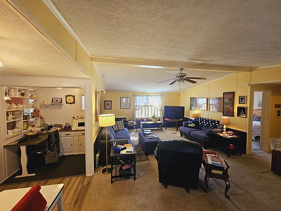 Welcome Home to this charming three-bedroom home on almost three acres. Spacious split floor plan with a large master suite and master bathroom with a large soaking tub. Oversized great room is open to the kitchen and enclosed back porch/sunroom. Take a seat and enjoy the front porch swing taking in that fresh country air! Mature trees and shrubs are abundant all over the property! Grab your fishing pole and catch some fish in this well-established pond (property line does run through the pond). A large barn is perfect for extra storage or farm animals. And a separate workshop with power is the perfect mancave!And a separate workshop with power is the perfect mancave! It also has a roll up shop door, drive through lean to for parking and perfect spot for a dog kennel.