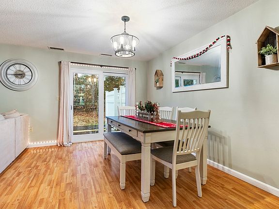Welcome to The Commons! One of Taunton's hidden gems — this townhouse seamlessly blends comfort and style. Step inside to an inviting open floor plan on the first floor, featuring a cozy yet modern kitchen updated with sleek tile flooring, tile backsplash, and a dining nook that complements the space perfectly. Adjacent, the dining area opens to a private deck through sliding doors, while the living room impresses with dramatic vaulted ceilings and rich wood laminate flooring, creating a warm, sophisticated ambiance. A convenient half bath completes the main level. Upstairs, you’ll find two spacious bedrooms, both with wood laminate flooring. The primary suite boasts vaulted ceilings and a private loft, ideal for a versatile extra space. The second floor also includes a laundry area and a nicely updated full bathroom with a double vanity. Additional perks include a new heating & cooling system, two assigned parking spaces, ample guest parking, and a peaceful community setting.