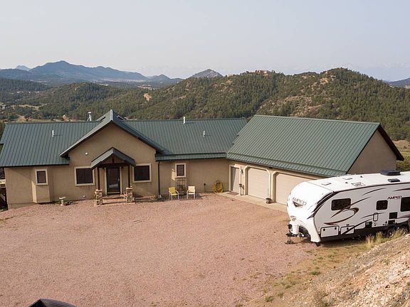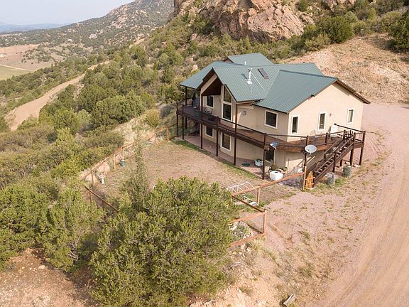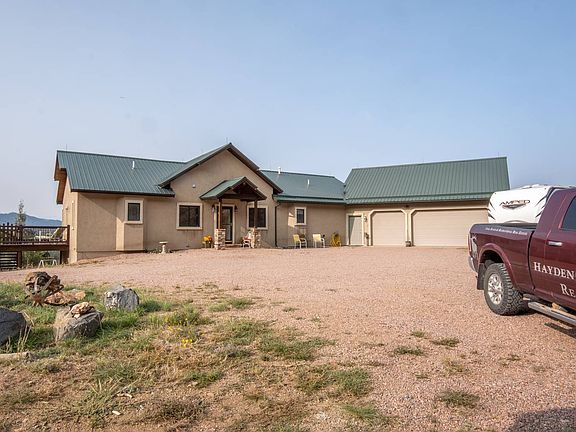 ~Be Still my Heart~ You can enjoy the spectacular views of the Sangre de Cristo mountain range, the lush grassy meadow below all while sitting on your very own covered deck equipped with an outdoor sound system. This beautiful home offers hardwood and tile flooring with in-floor radiant heat, a complete surround sound system inside, to beautiful bright Aspen T&G vaulted ceilings and remote-controlled skylights. The main floor consists of an office, 1/2 bath, master bedroom with a walk-in closet & attached bath, laundry room, living room with a wood-burning stove, dining room, storage room, & the kitchen. The kitchen is equipped with BOSCH stainless steel appliances consisting of a new dishwasher, five-burner gas range, granite countertops, beautiful cherry cabinetry complete with under-cabinet lighting, and tiled backsplash. The over-sized walk-in pantry with excellent storage shelving provides enough space to stock up provisions for quite a while! The deck just off the kitchen is covered and heated wraps around the home and gives you direct access to those breathtaking and limitless views that are second to none from your lounge chair or from the therapeutic comfort of the hot tub, which is included! The deck is plumbed with one propane outlet and has access from two sets of screened double-doors. Downstairs, you have 2 bedrooms, 1 full bath, a family room with a pellet stove, a large storage room, utility room, & an excellent bonus room perfect for your hobbies! The yard is fenced and offers ample space for gardening and pet safety. According to the Well report on the Colorado Division of Water Resources, this property has an excellent well. Irrigating up to an acre and watering your animals outside is permitted with this well. You also have an in-floor heated 3-car garage with full storage above and room for a workbench. Additionally, the property offers an insulated 32 x 40 workshop with a concrete floor and heated with a pellet stove & an office. Road Maintenance and Trash Service This community has a Road Usage Group (aka: RUG) and is $585/year. The road maintenance is excellent. Also available is road plowing for your private drive and a small additional charge. Full trash service is $360/year. The Land The property has private access to State Land, which gives direct access to the national forest. Excellent access to beautiful BLM property and Grape Creek nearby. Enjoy a hike and discover remnants of the old narrow-gauge railroad that once traversed this western country and the footprints of old western towns that settled along the old historic rail path. Internet and TV - Work from HOME Currently: Hugh's Net - Internet Dish - TV Location Excellent year-round access and about 35 minutes from both Canon City or Westcliffe! The home is located 14 miles from Westcliffe & about 14 miles from Canon City. Colorado Springs Airport - 1.5 hr. Monarch Ski Resort - 1.5 hr.