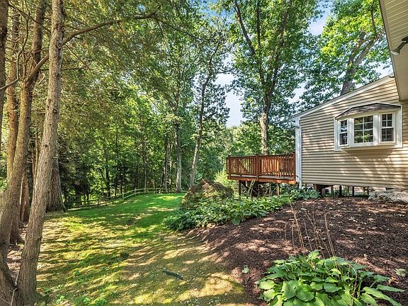 You'll be sure to fall in love with this handsome & spacious 4/5 bedroom, 3.5 bath home featuring a gorgeous, private back yard, flowing floor plan and stunning architectural detail throughout. From the tranquil, neutral color palette to the large, fully applianced kitchen, many hardwood floors, and captivating touches including a dramatic two-story foyer, bifurcated stairway, catwalk, arched openings, and 2 gorgeous wood burning fireplaces, you will appreciate how meticulously this home has been maintained. The 5th bedroom could easily be used as a home office or gym, while the finished portion of the walk-out basement offers opportunities for home office, den, or game room. Rooms are ample, and there is an abundance of natural light and storage. A split rail fence adds character to the lovely, park-like grounds which can be enjoyed from the comfort of a large deck just off the kitchen. Steel beam construction, Center School district and super convenient to I-91.