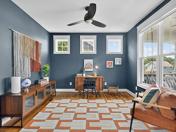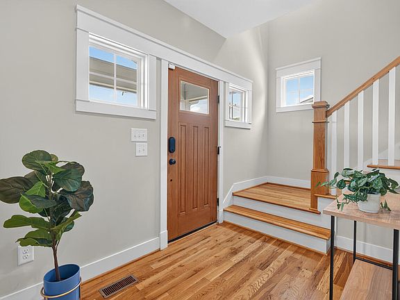 Perched above downtown with skyline views, this beautifully built B. Wallace home puts the best of Durham right at your doorstep. Just an easy stroll to Press for your morning crepe and coffee, DPAC shows, Bulls games, a breezy bike ride to the Farmers Market, a jog down the ATT, —plus endless date night spots, ALL without the headache of parking! Thoughtfully designed with gorgeous hardwoods throughout, stylish fixtures, ample windows, and sizable closets give the home warmth, character and comfort. You certainly won't want for space here-- 3 bedrooms, 2.5 baths, a generous sized first-floor office, plus a screened porch, provide ample area for everyone to spread out. And what's more?? Yes—a garage! Cleverly divided into two versatile spaces, it's ready for your gym, studio, workshop, or game room—with plenty of storage left for those bikes and extra gear. The private, landscaped backyard is ready for alfresco dinner parties under the stars, while the covered front porch is your front-row seat to Bulls game fireworks on summer nights. Top it all off with a sealed, conditioned crawlspace (*chef's kiss). So many boxes are checked here. And truly, the walkability is unbeatable.