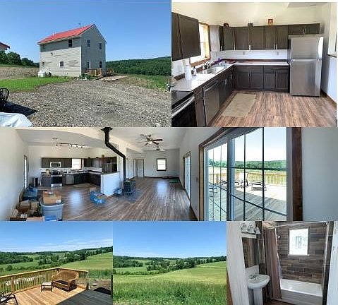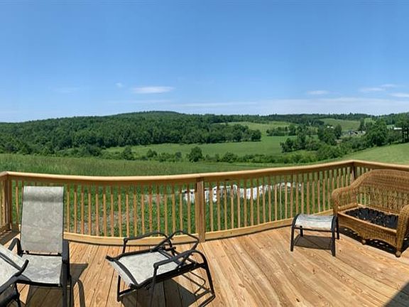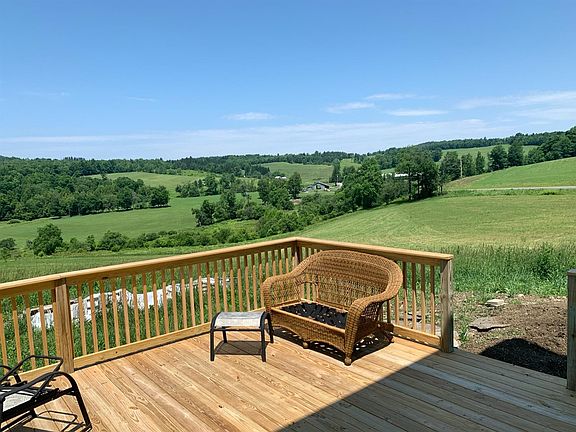 Owner will consider creative financing.Step into this basically new house. Current owner bought a shell last year and completely finished it with new everything. Then as luck would have it, his company decided to relocate him before moving in. Beautiful new kitchen and appliances, 2 new bathrooms, with washer and dryer upstairs near the bedrooms. Oversized closets in all three bedrooms.The quality here reflects that he planned on living here. His misfortune can be your good luck.The views from the large new deck will please you. Fields, meadows and woods wherever you look. The land consists of woods and open fields. excellent pond site. Set back off the road with 1,000 feet of road frontage. Lots of timber in the woods including hemlock.And, then there is the new building. The owner designed a building that can be used as a garage or a guest house. Shower and toilet are partially installed. Sewer hookups and sinks in place and 100 amp electric in the building. You have to check this building out to see the versatility it can offer.The peace and tranquility, combined with the views and wildlife are beckoning you to come experience all this property has to offer. Check it out today!Needs new siding where the siding was replaced due to aging.