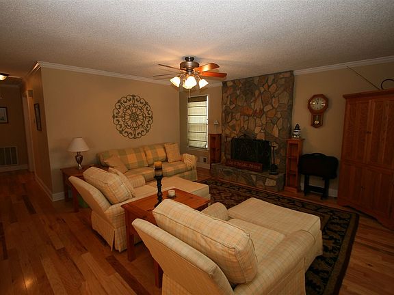 This precious, Water Front home on almost a quarter acre, was completely Renovated inside and out several years ago and has only been used as a vacation get-away since! It is obvious that the home has been cared for. Beautiful Hardwood Floors glisten upon entering the Living Area and they continue down the hall. The Rock Fireplace is a focal point of this area. Open to this room is the Kitchen/Breakfast Combo with all Stainless appliances, Granite counter top, and Ceramic flooring. Windows line this entire area so that there is a View of the Lake at all times. The Hall Bath has 2 separate Vanities with sinks and a dark rich wood finish. Here you will also find a Jetted Tub accented with beautiful tile work. The Master Suite has it's own personal Full Bath with Double Vanity Sinks, Granite Counter, Ceramic Flooring, and Ultra Stylish Shower accented with Tile. The Basement area is Awesome! This area can be used in a number of ways. There is a lovely Built-in Rock Wet Bar and adjoining Rock Fire Place. The owner turned a walk-in Closet into a Bunk Room with built-in bunk beds. There is also another walk-in closet for this small bedroom. This Basement has possibilities for any new owners needs. On the upper Deck is a large Screened Porch that overlooks the Lake. What a fantastic place to entertain or relax with family and friends. The Deck wraps around and leads down to the backyard and Lake. Ample Storage space is under this Deck for all of your Water activities and your personal Dock is positioned perfectly in your little Cove. Most all furnishings and accessories are negotiable. No need to worry about a thing...just move right in. Don't be mistaken by the quaint little vinyl sided home as you pull in. You will fall in love with this charming house once you step inside.