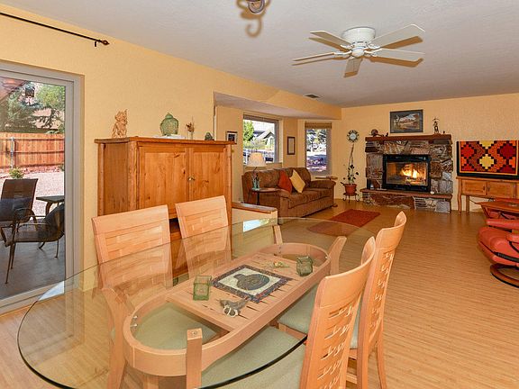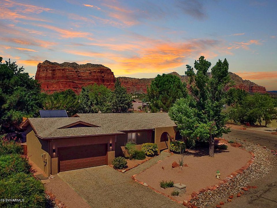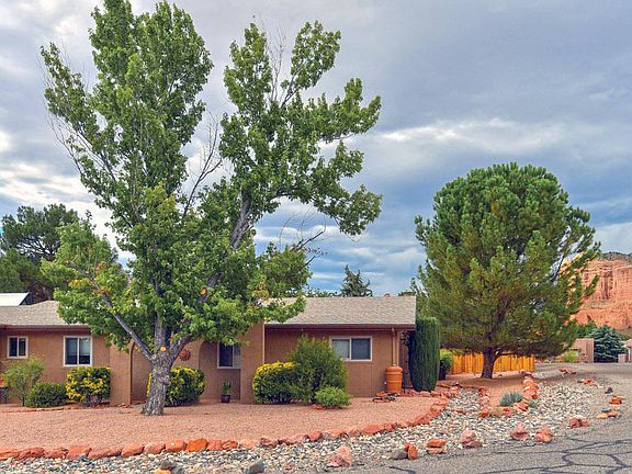 Adorable, 3 bedroom Home Nestled on a Corner Lot with a completely fenced back yard lush with Trees, Flowering Plants and Red Rock Views. Home has been improved with Core-tec Vinyl Tile and Bamboo Flooring, All New Low E insulated Windows, Remodeled Master Bathroom, Water Softener and Reverse Osmosis have been added and the Water Heater is powered by seller owned solar. Enjoy Morning Coffee on your covered back patio. Feel the crisp autumn air sail through the home as you enjoy the wood burning in your fireplace. Added Bonus of lots of closets and built in Cabinets in your 2 Car Garage with Bonus Work Bench. Within Walking Distance to shops and eateries of the Village of Oak Creek. It all adds up to a turn-key move in ready darling in a price point that is quickly vanishing in Sedona!