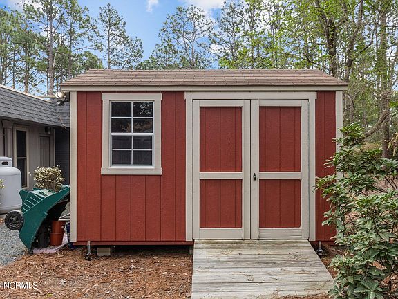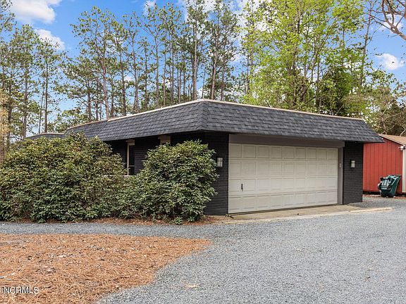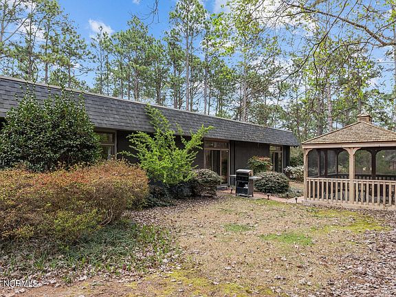 Welcome Home to 125 Horseshoe Rd. A stunning, single level mansard style mid-century modern home nestled in between holes 7, 8 and 9 at Pine Needles. Natural light pours in from the numerous floor to ceiling windows and doors. The landscaping is complete with azaleas, rhododendrons, dogwoods, camellias, eastern redbuds and more. The blooms in the spring and summer perfectly pop against the dark, PermaTint brick stain. The backyard also features a 11' by 15' Gazebo, which is fully screened, has electric and a ceiling fan, provides a relaxing space to enjoy the view.