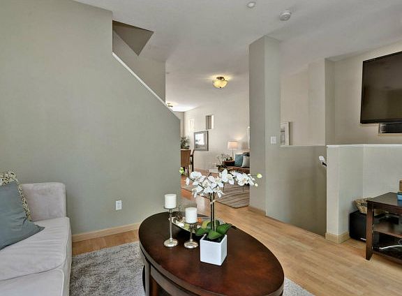 Beautiful end unit in one of the best locations facing the park! Upgrades within past 2 yrs staying w/property include a 70 inch flat screen mounted in stairwell & extra large capacity washer & dryer. Other amenities include wonderful open floor plan, attached 2-car garage, updated light fixtures, gas cooktop, balcony overlooking the playground, A/C w/1-year old compressor, & laundry room.