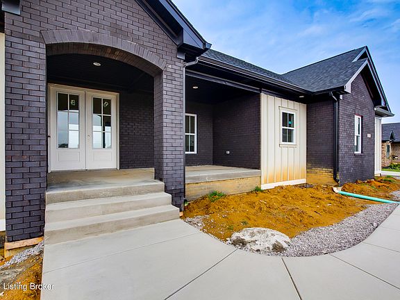 New construction in Goebel Crossings available in 30-60 days. Don't miss this beautiful ranch with extra features. Enter the great room and take in the open space and natural light that is provided by the double slider exit to the covered concrete patio, with just a couple steps to a level massive back yard. But first, take in the striking open kitchen with quartz countertops, custom cabinetry and a gorgeous backsplash. The cabinets have soft closures and the pantry is a massive walk-in. The dining area unique wainscoting and a backyard view. The primary bedroom has a trey ceiling and provides a huge walk-in closet. The primary bath is highlighted with a custom double head walk-in shower, double vanities and a water closet. The laundry room has a pass thru into the . . . primary walk-in closet. The garage entrance has a drop-zone bench and storage and is adjacent to the laundry room. There is Luxury Vinyl Plank floors in the majority of the home, carpet in the two guest bedrooms. The interior doors will be black for a rich look. Appliances will be GE and the HVAC is a Carrier. Kitchen backsplash has not yet been installed, but is planned to be from counter top to ceiling. The basement is unfinished but is pre-plumbed for another bath. There is plenty of space to finish off the basement to meet your needs and lifestyle. Here's your chance to get into a newly constructed home in Goebel Crossings before summer! (expected completion is 30-60 days)