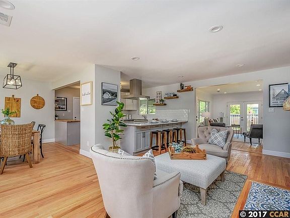 Completely remodeled charming modern farmhouse with captivating details. This 4BD /2.5 BA, 1,892+/-sq. ft. home offers a highly desirable floor-plan, an open concept kitchen-living-dining room and is filled with charm including a gray-washed shiplap feature wall & floating shelves. The renovated kitchen features stainless steel appliances, farm-style lighting features, an expansive Carrera marble slab & butcher block counter tops, a farm style sink and a pantry. The family room is conveniently situated adjacent to the kitchen w/French doors leading to both a covered patio & the expansive backyard plus an extensive grass area, bocce ball court, boxed garden beds, & plenty of room for a fire-pit and/or play structure. The dream master retreat is appointed with French doors leading to the backyard, a set of two barn doors leading to both the walk in closet & the fabulous master bathroom. Dont miss this amazing home ideally located close to downtown Pleasant Hill, fwy access & parks.