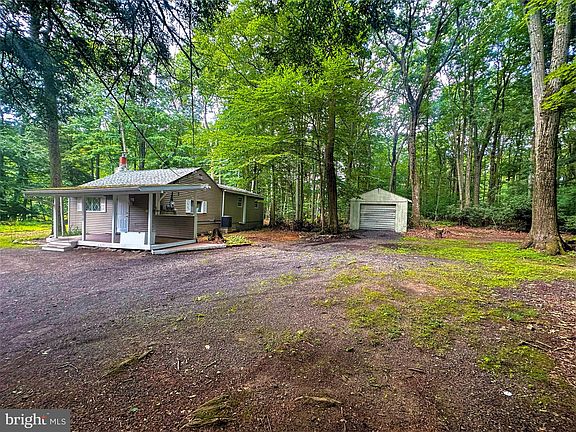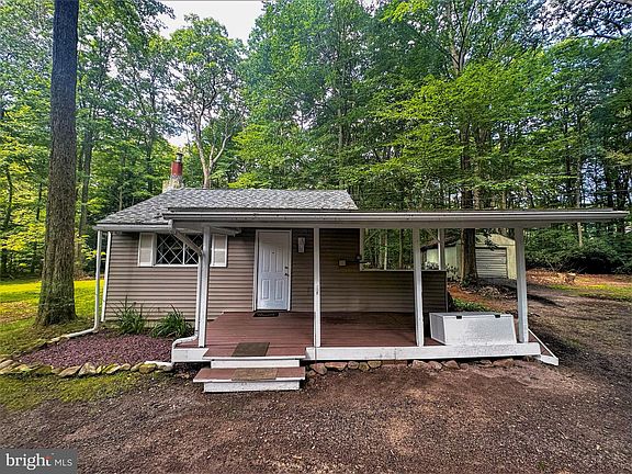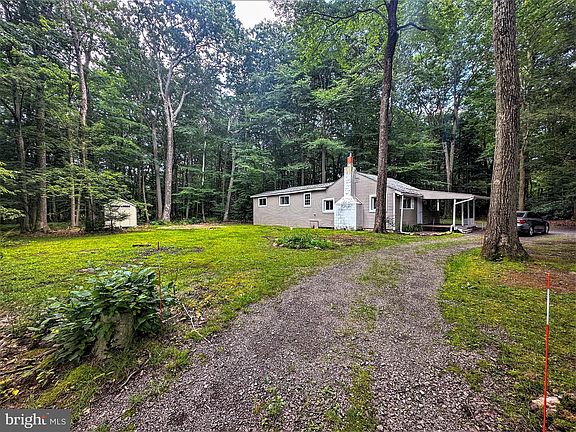 **UPDATE** MULTIPLE OFFERS RECIEVED. HIGHEST AND BEST DUE BY 6 PM TUESDAY 8/8/23** On your mark, get set, GO! LONG POND -- Your Pocono mountain getaway home is now available! This 1-story home situated on an acre of wooded and cleared land, features an open floor plan with a stylish sunken living room oozing with that "mountain vibe." Up 3 steps from the living room, you have a laundry area and a full bathroom. Up here you will find 2 bedrooms of different sizes ; one that is a nice size, and another that is BIG. They both feature wood beams that compliment the spaces aesthetically. At the end of the large bedroom you'll find an extra room that leads to a sliding glass door to the backyard/woods! Although there is a lot of space to park on the dirt driveway in the front, there is a detached garage! New HVAC system has been installed including new duct-work in April 2023 along with a new electrical panel and new electrical throughout including switches, outlets and wires. No HOA. Low taxes. Think scenic mountain views, lakes, Pocono Raceway (couple miles up the road!), Golfing, Waterparks, Camelback Ski Resort, PA Game Lands, ATVs, awesome hiking trails... it's all here! Make your offer today!