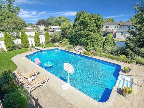 DIAMOND EXPANDED HIGH RANCH LOCATED IN BAY SHORE WITH ISLIP SCHOOLS . ATTENTION TO DETAIL THROUGHOUT HOME WHICH FEATURES GLEAMING HARDWOOD FLOORS, DIAMOND EXPANDED KITCHEN WITH VKING APPLIANCES, GE MONOGRAM BUILT IN REFRIGERATOR,ACCESS TO REAR TREX DECK PERFECT FOR ENTERTAINING !! RADIANT FLOOR HEATING, EXPANDED DINING ROOM/DEN AREA, CATHEDRAL CEILINGS IN LIVING ROOM WITH SKY LIGHTS AND WOOD BURNING FIREPLACE . MAHOGONAY RAILING AND CUSTOM HARDWOOD MOULDINGS AS WELL. LARGE EXPANDED MASTER BEDROOM WITH ACCESS TO BATH AND LARGE WALK IN CLOSET , 2 OTHER LARGE BEDROOMS ON 2ND FLOOR .LOWER LEVEL HAS 1 BEDROOM WITH OPTIONS FOR MORE, LARGE FAMILY ROOM, FULL BATH,LAUNDRY ROOM, STORAGE ROOM, GYM/BEDROOM AS WELL AS ACCESS TO REAR YARD ! OTHER FEAUTURES INCLUDE CENTRAL AIR, GAS HEATING, HEATED 20X40 INGROUND POOL , 6 ZONE SPRINKLER SYSTEM AND 2 CAR GARAGE!--SEE VIRTUAL TOUR!