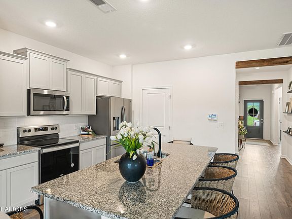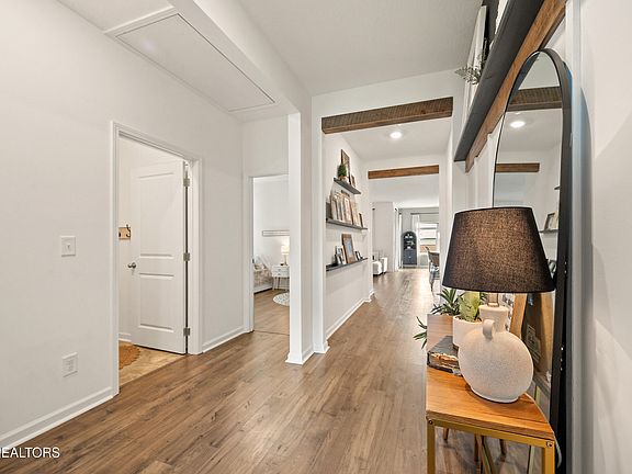 Welcome to your dream home in the heart of Lenoir City's lake-loving community! Only 3 years old, this beautifully upgraded, one-level gem has no stairs and was voted *Best Yard in the Neighborhood*. With custom upgrades galore, it's packed with unique character—wrapped beams, board and batten, shiplap accents, and built-in shelving in almost every closet. The pantry has wood shelves to transform to whatever size you wish too! Luxury vinyl plank flooring runs throughout—no carpet in sight. Outside, enjoy a fully fenced yard and your own private outdoor oasis, perfect for morning coffee or evening gatherings. This home is anything but cookie cutter!
