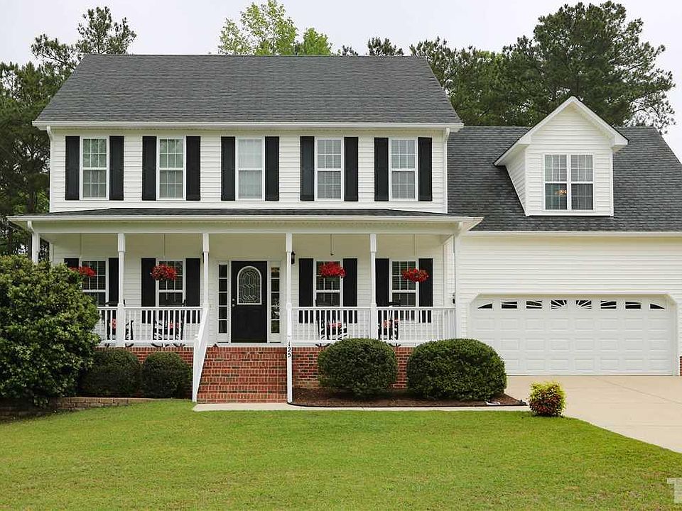 Stunning Southern home on nearly half an acre of beautifully landscaped & wooded lot. Equipped w/ 5 beds, 2.5 baths, formal dining room, eat-in kitchen, wet bar, gas log fireplace, study, & so much more! Master suite w/ walk-in closet, sitting area, ceiling fan, & tons of natural light. Master bath w/ his/hers cultured marble vanities, garden tub, & separate 4' shower. 3 additional beds up w/ a 5th bed/bonus room! HUGE rocking front porch & serene private back deck! ALL APPLIANCES & HOME WARRANTY INCLUDED
