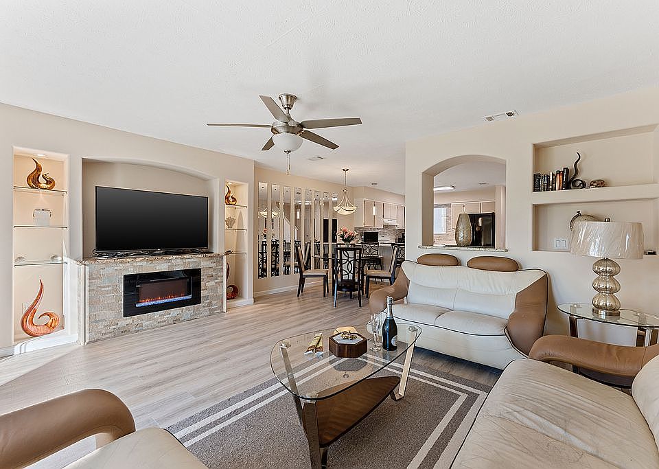 2Bdr townhouse located in very desirable Gulf Highland Resort. The property is situated on Kimberly Dr. which is high and dry, no flood zone and very quiet one-way street, backed to the heated swimming pool and overlooking the mini golf course. The whole townhouse was completely remodeled, including both bathrooms with tile, laminate flooring, granite and quartz tops, custom entertainment wall with fireplace.