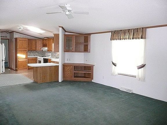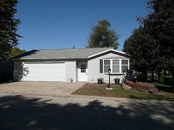 Bright & cheery, vaulted ceilings, skylights, and built-ins. Spacious living room, 4 seasons room, kitchen-dining room, split bedrooms, 2 bathrooms. Master bedroom has a walk in closet and master bath with shower. Oversized 2 car garage has ramp, pull down stairs for storage as well as closets for more storage, workbench and two doors out to the breezeway. Farm field in back yard. Newer roof, furnace, water heater, bedroom & bathroom window. Lot rent is $280 with $10 each additional persons. Buyers must be approved by Knollwood Mobile Home Park Management. Home and appliances in "as is" condition.
