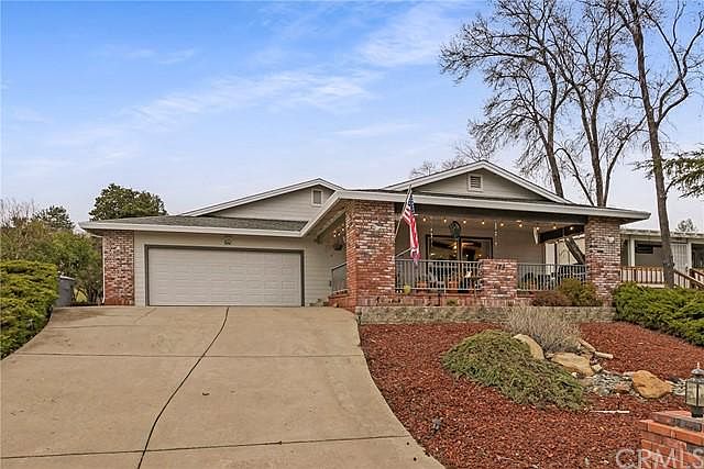 Pride of ownership abounds in this tastefully updated Kelly Ridge beauty with solar! From the moment you walk up to the property, you will be smitten with the covered front porch that offers beautiful sunset views of Lake Oroville. Step through the front door and you will find a fantastic open floor plan with open beam ceilings, recessed lighting, luxury laminate floors, fresh paint throughout, and a beautifully appointed gas fireplace hearth. This home is well appointed for those who love to host with the kitchen boasting tremendous storage, counter space, all beautifully updated and well appointed with stainless steel appliances, corian counters and a modern two tone color scheme to the cabinets. Just beyond the living room and kitchen space, you will find a formal dining room with built ins and buffet counter to further make this home an exemplary space for hosting! THIS DINING ROOM COULD BE EASILY CONVERTED INTO A 3RD BEDROOM! The guest bedroom and office rest along one side of the house with a master bedroom en suite resting privately at the other side of the house. The crown jewel of this home is the master en suite with well appointed vanities, his and her privacy bathrooms, his and her sinks, built in jetted tub, walk-in shower, and a generous walk-in closet with an ample amount of built in cabinetry. Just beyond the walk-in closet awaits the laundry room with utility sink and even more cabinetry! Out back, you will find well established and fruiting orange, grapefruit, and lemon trees. This home is an exceptional example of craftsmanship and pride. You don't miss this one.