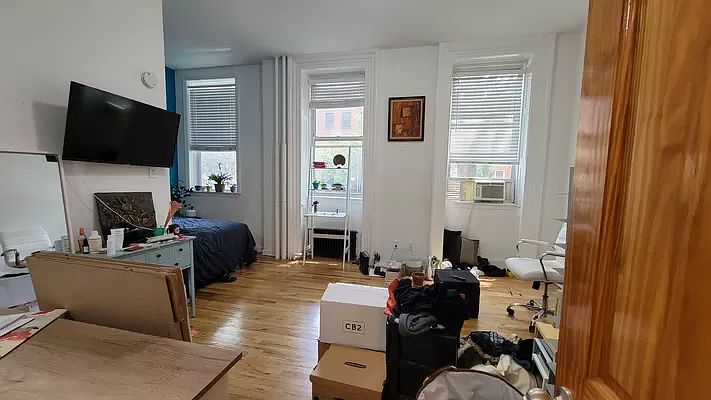 FORT GREENE On: Lafayette Ave Btwn: South Oxford / Cumberland Streets No Laundry in building - closest Laundromat one block away on Lafayette Ave. - 2nd floor, south facing, SUNLIT - Large Alcove STUDIO - Hardwood floors, 11 ft Tall ceilings - 3 Big windows, good size closet Suitable for a single person Sorry NO PETS ALLOWED BROKERS FEE APPLIES Prime location of Fort Greene, close to ALL sorts of shops and amenities along Fulton Street, conveniently located near the A, C trains. 5 - 7 min walk to Atlantic terminal with B, D, N, Q, R, 2, 3, 4, 5 trains and the LIRR.