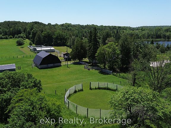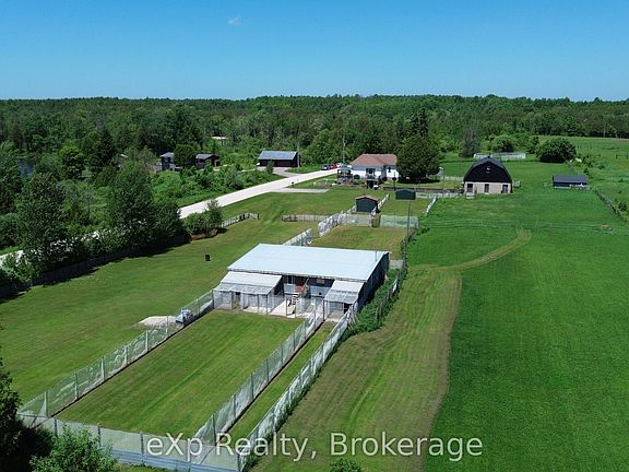 Tired of your livelihood being in someone else's hands? Welcome to this charming home with a turn-key dog boarding facility, barn with 5 box stalls, tack room, hay storage and a small drive shed, all nestled on over 6 acres of picturesque land including a once registered apple orchard. The orchard walking trail is located behind the fenced-in yard at the house, go through the wooden gate and the orchard goes straight back to concession 6. Zoned specifically to operate a kennel, there is a 15-kennel (ample room to expand and add more kennels) dog boarding facility with a fenced-in run, previously operated as the highly regarded Day Away Pets for 17 successful years, with over 120 loyal clients. The present average rate at comparable facilities is approximately $40/day and the Sellers at the time of operating their facility were mostly at full capacity 7 days a week. The Sellers will happily spread the word to their former clients to assist in the launching of your business (their phone is still ringing with requests). The home itself exudes charm and warmth, with 3 bedrooms and 2 full bathrooms, a sun-filled country kitchen with views overlooking your pastures and a finished lower level with a walkout, providing even more living space. The rustic design and original features of this wartime home have been lovingly maintained, while the updated conveniences offer the best of both worlds. For animal lovers, the property offers an ideal home for your horses, livestock, and other small farm animals. Whether you're enjoying a morning coffee on the wrap around deck, tending to your animals, or simply walking through your own private paradise surrounded by apple trees, the possibilities are endless. Also perfectly suited for a Sniff Spot (google Sniff Spot) location to generate a more passive income . Just minutes from Markdale's many amenities, the new hospital, schools, hiking trails, rivers and lakes. Furnace -2022, Roof-2013, Septic Inspected & Pumped -2024