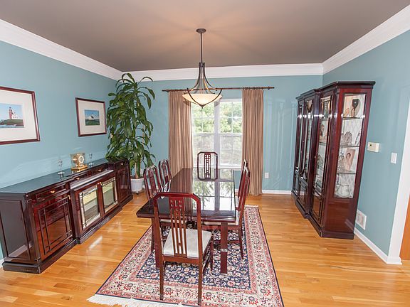 A really warm & inviting Bentley model w/ superior Meredith Farms quality. Upgrades/improvements everywhere. Kitchen feat granite counters, backsplash, & large center island. Bumped out dining area with skylights. LED recessed lighting, custom sandstone sink. Family rm feat cath ceiling, gas fplc and 2 skylts. Hdwd floors entire lower lev. LR open to dining room w/ custom columns, crown molding, hi hats. 2 zone heat and air. Security system, central intercom/radio. 2 story foyer w/ hw flrs, wall panels, display ledge, palladium window. Spacious master BR w/ tray ceiling, hi hats, 2 walk-ins, & large mst bath w jacuzzi, 2-head shower, TV mnt, speakers, skylt. Fin basement with 2 rec rooms. Priv flat yard with paver patio & blt-in koi pond. A truly comfortable, lovingly maintained and luxurious home!